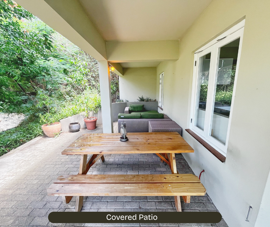 ???? Large covered patio with lush garden + hillside views ????
