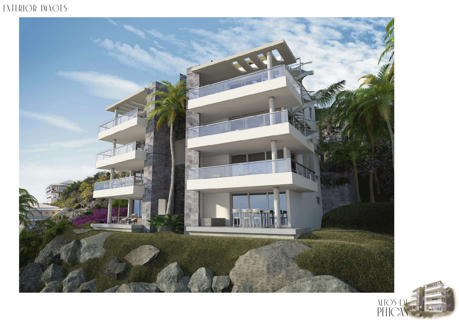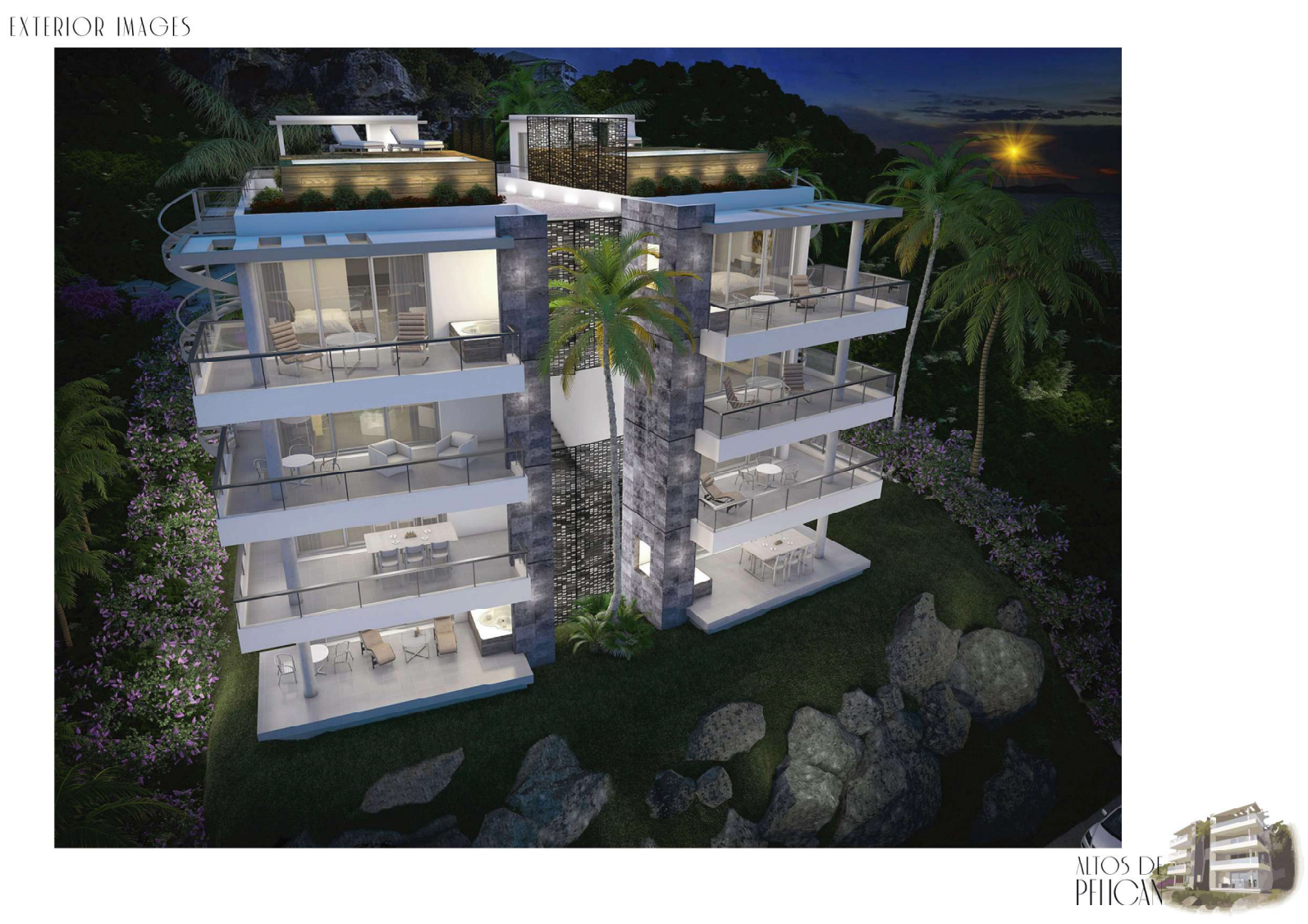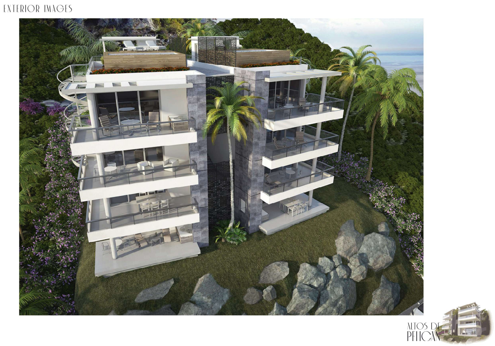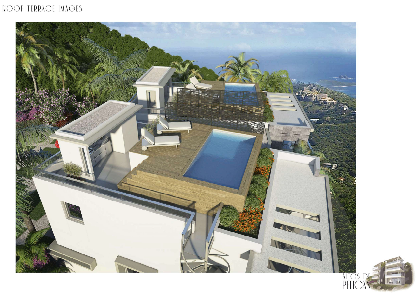 The lower apartments are designed in two levels, with ample terraces which allow to enjoy the beautiful panoramic view in the mild Caribbean climate. The upper level penthouses are designed in three levels also with ample terrace and private pool at the third floor.