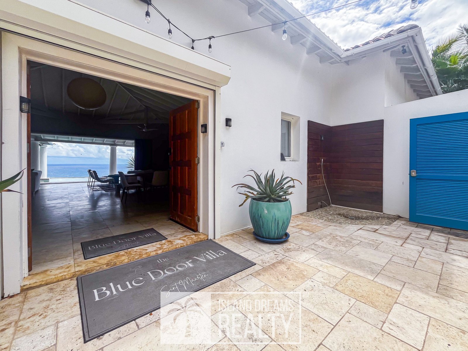 The Blue Door Villa is a massive, luxurious Villa located in Oyster Pond on the Dutch side, minutes from the French border in a quiet gated community. The Blue Door Villa is a perfect place to relax while you listen to ocean waves and swim in the infinity pool. There are multiple outdoor spaces offering privacy or space to gather.