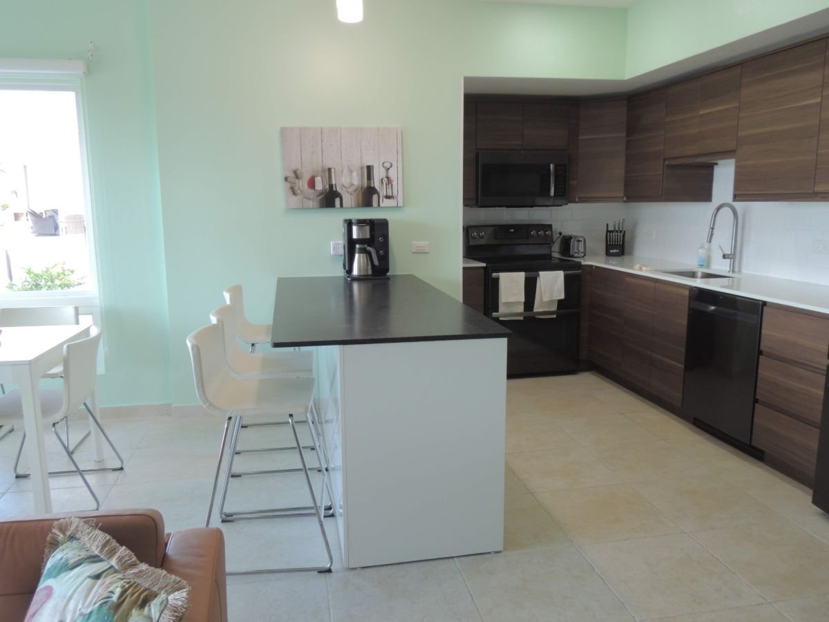 This is one of the only ground floor units available (and they don’t last long). This offers the amazing green space to merge with your patios, extending your Caribbean experience outside. Fully furnished, all you need to bring is your bathing suits and flip-flops. And note that while it is a 2 bedroom, there is a queen size Murphy bed in the living room! Can sleep 6 in total!