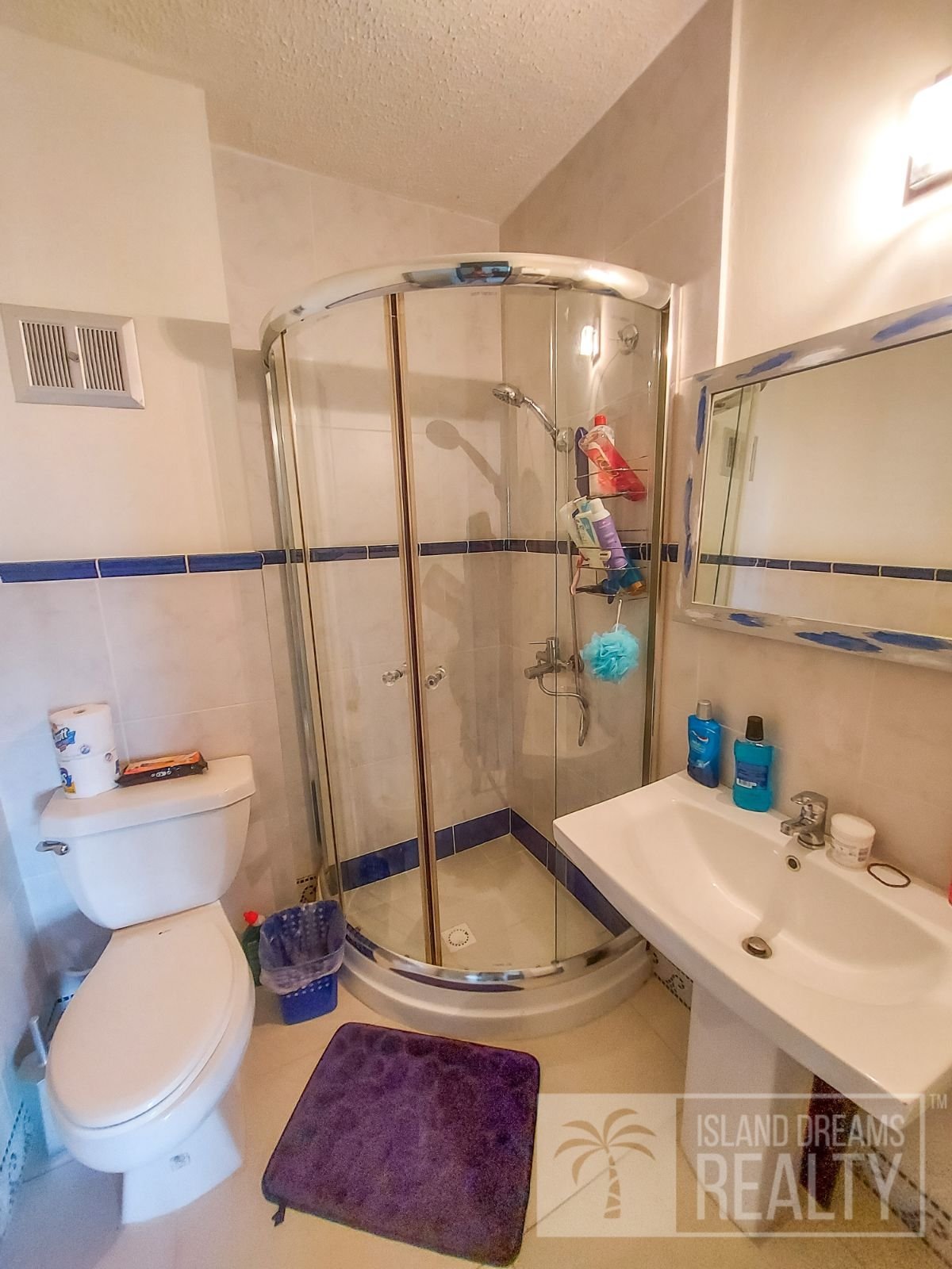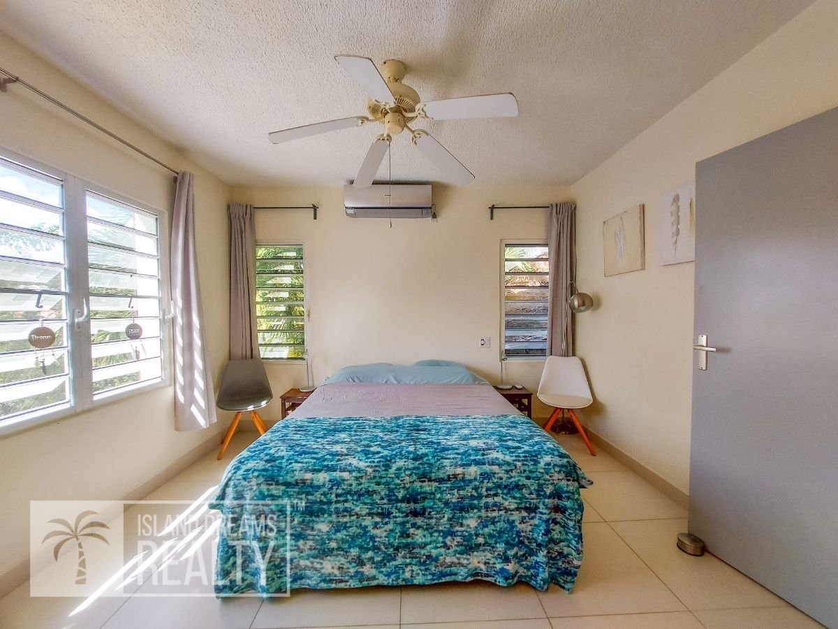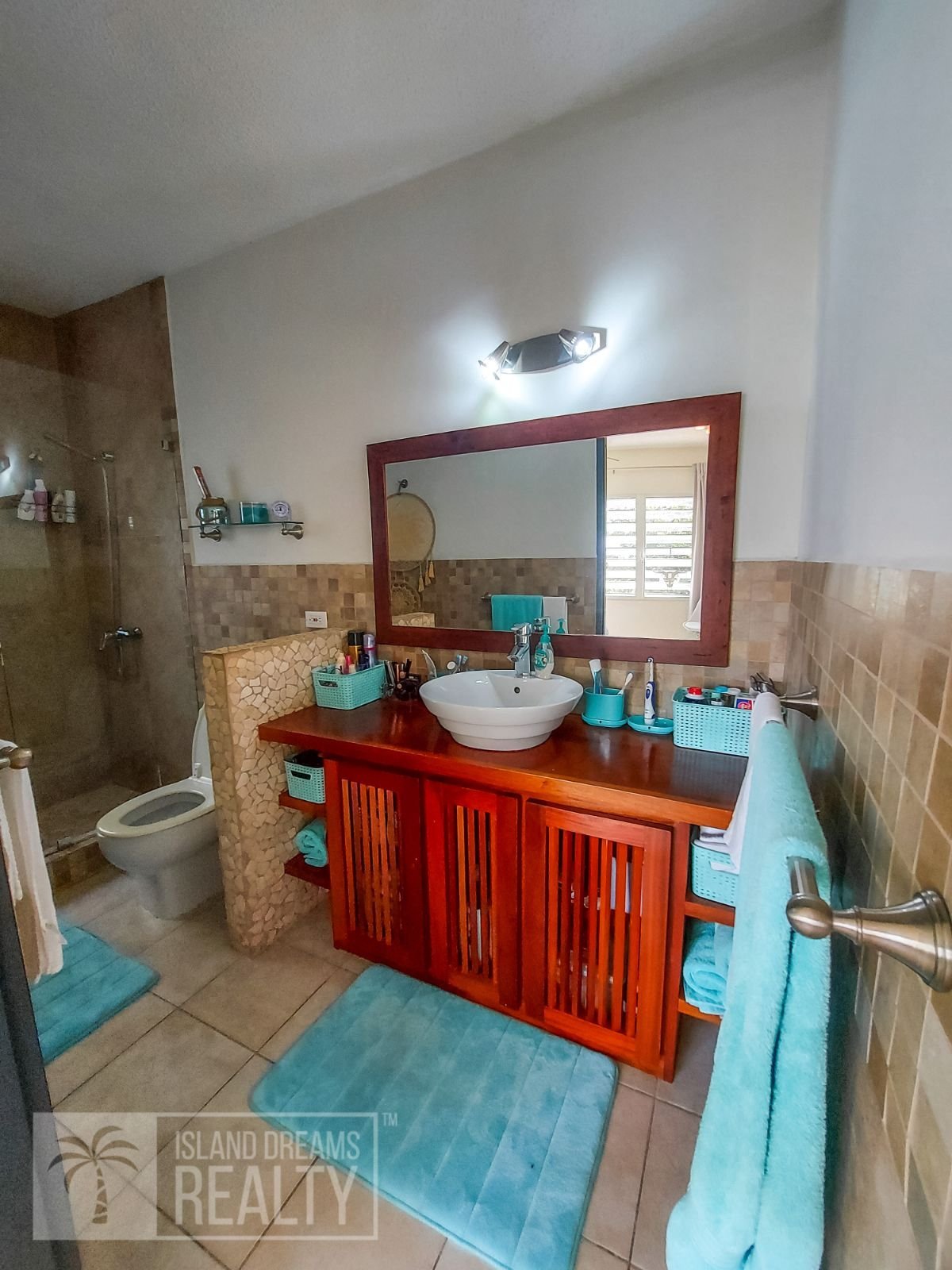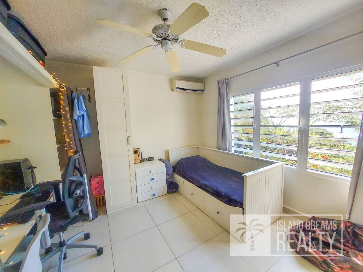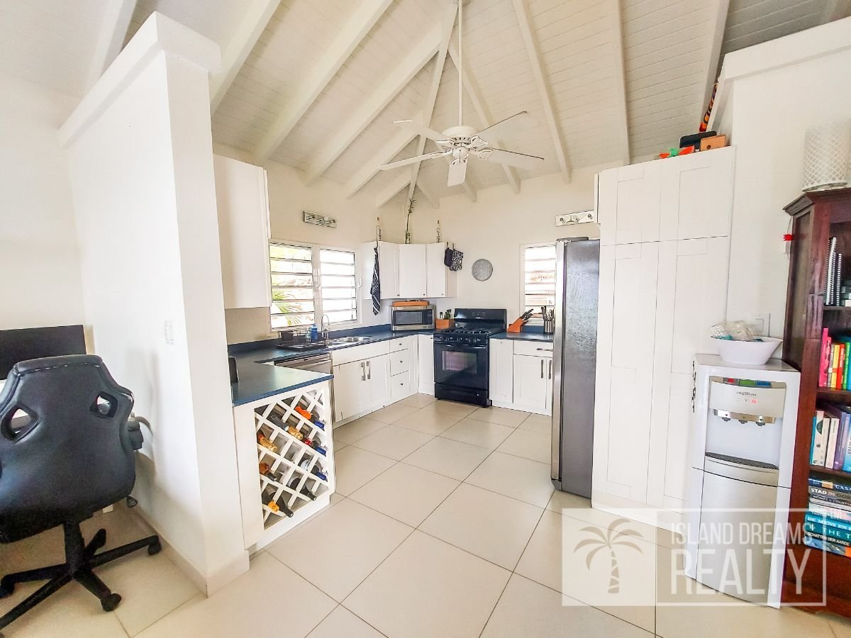 This 3-bedroom, 2 full bathroom villa has many windows giving it lots of natural light and a constant flow of tropical breeze throughout the villa. The villa also features large balcony doors that lead you straight onto the large balcony, creating a huge indoor/outdoor living space with spectacular views of the ocean and neighboring islands.