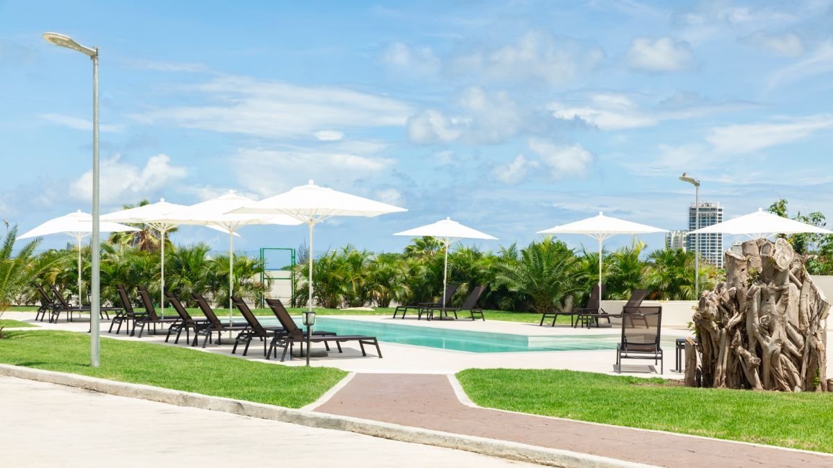The Emerald at Maho consists of two buildings with four floors each with a total of 72 apartments in each of the buildings. Amenities for residents include a large swimming pool and pool deck, laundry facilities, game room, a barbecue area, fitness center, tech workspace with printer, a sand volleyball court, 24/7 security and free WIFI in common areas. Storage units as well as indoor and outdoor parking space are also available.