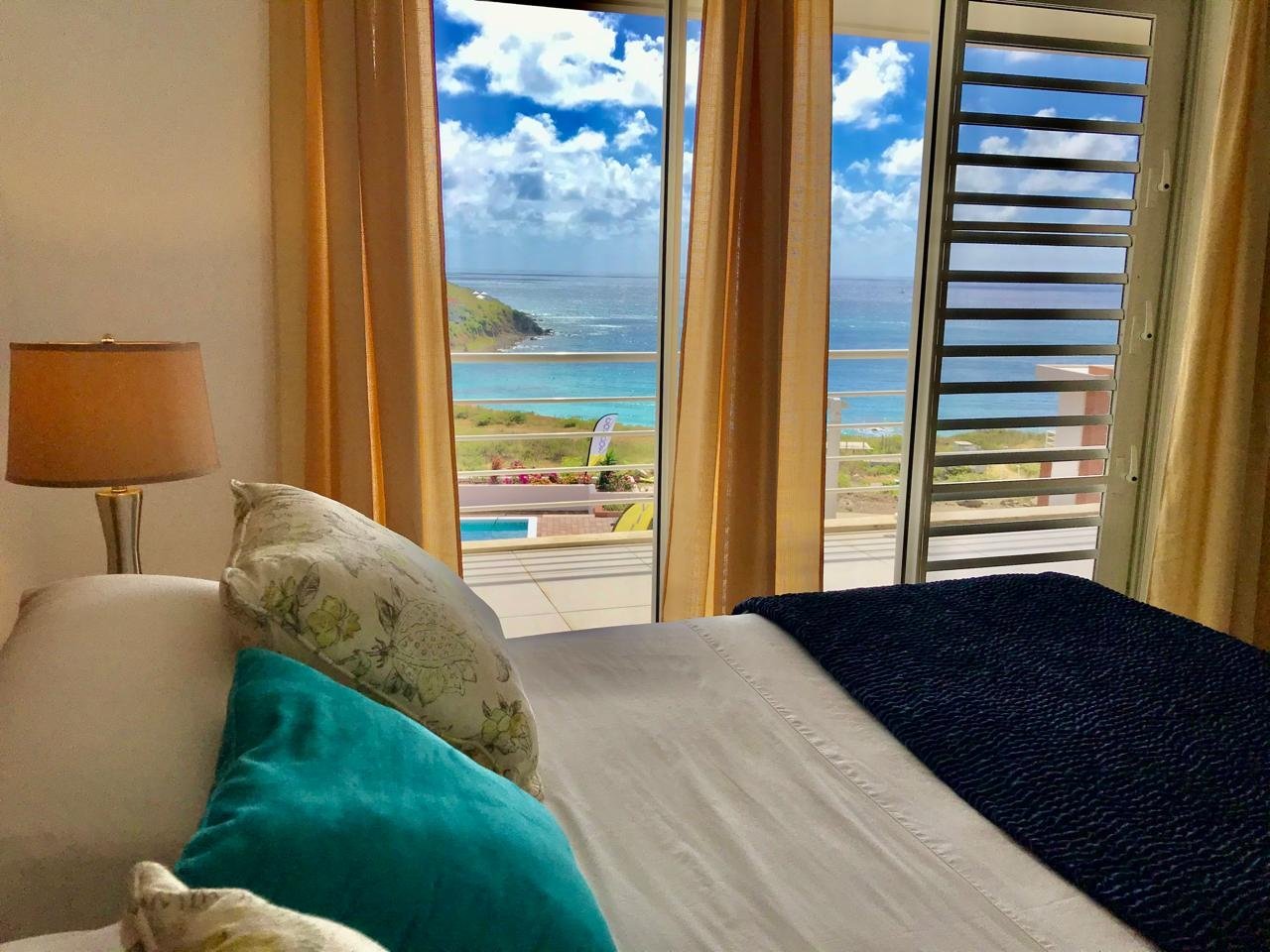 This condo has stunning ocean views and is near the community pools and gym.