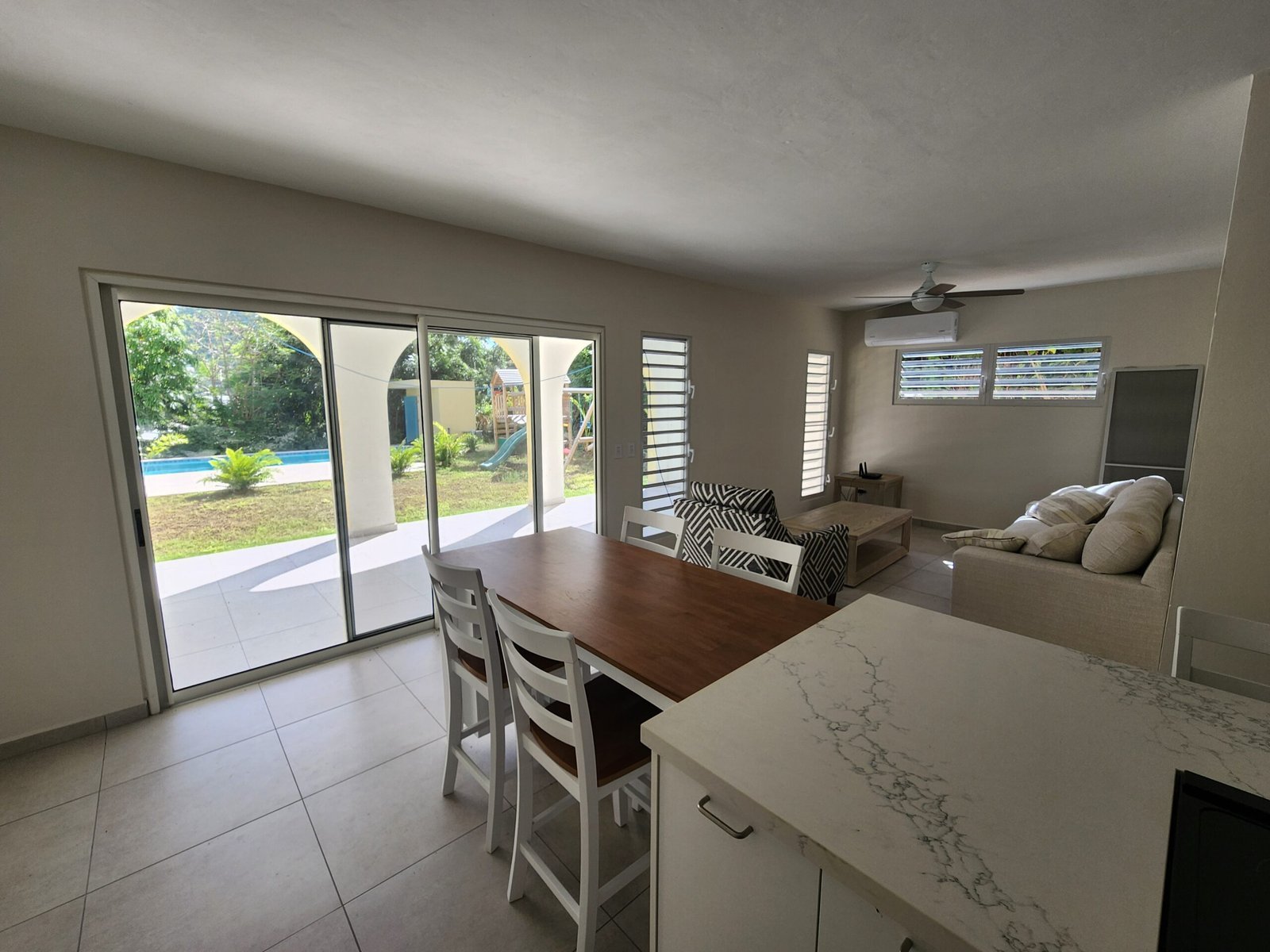 With walk-out porch directly into the garden and pool area — perfect for indoor/outdoor living.