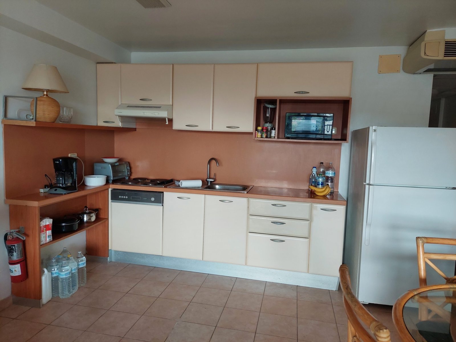 The condo is located on the ground floor and has convenient access to the pool area. There is an open floor kitchen and living room with sliding doors leading to the balcony. It comes fully furnished, with beautiful garden, pool and ocean views and is overall in great condition.