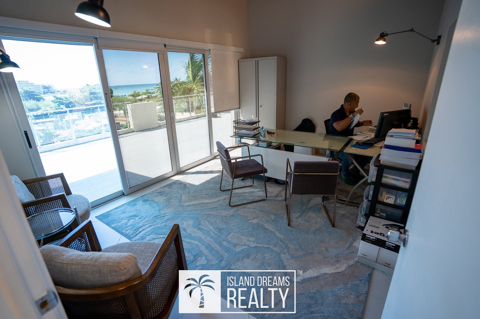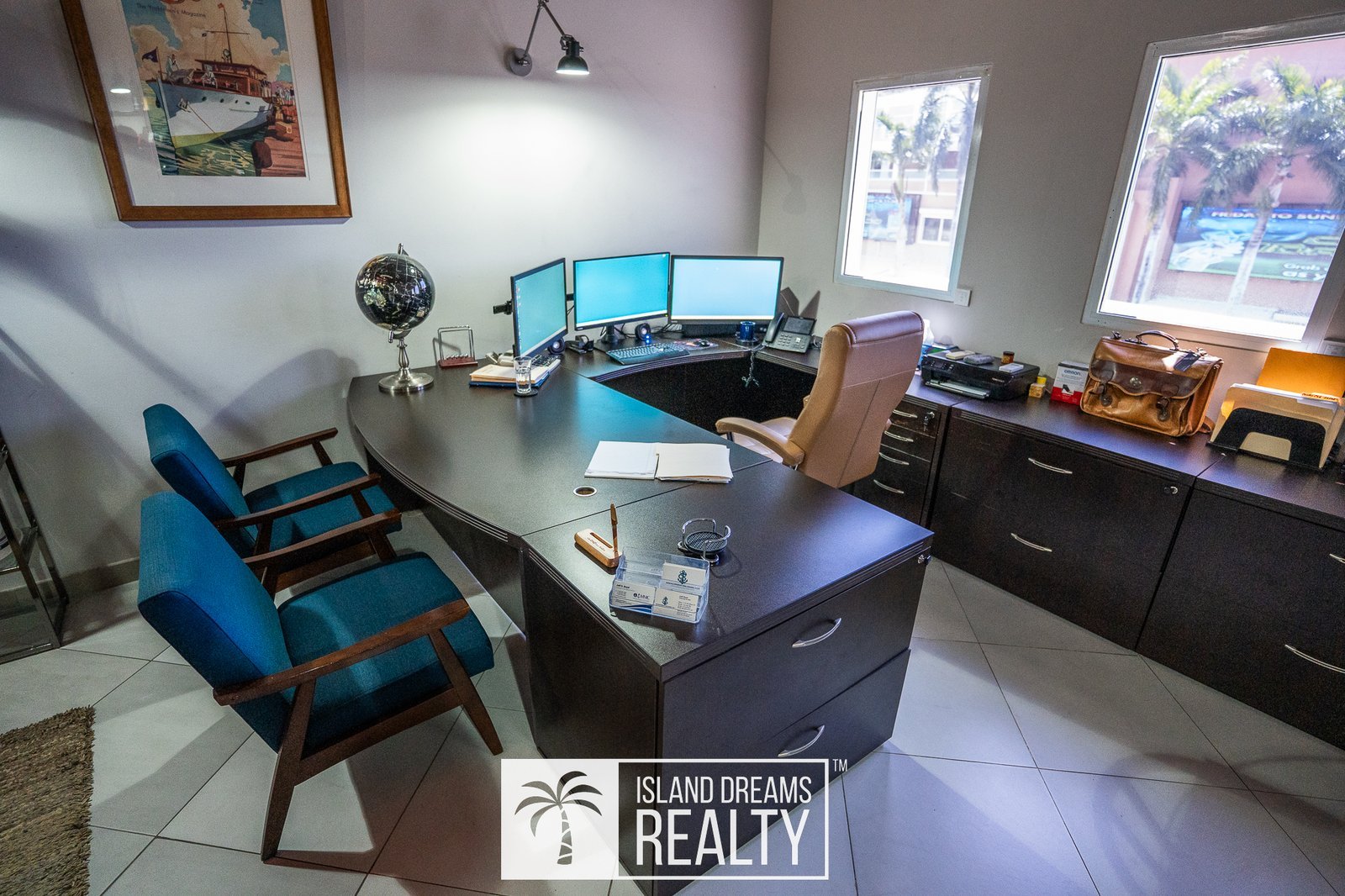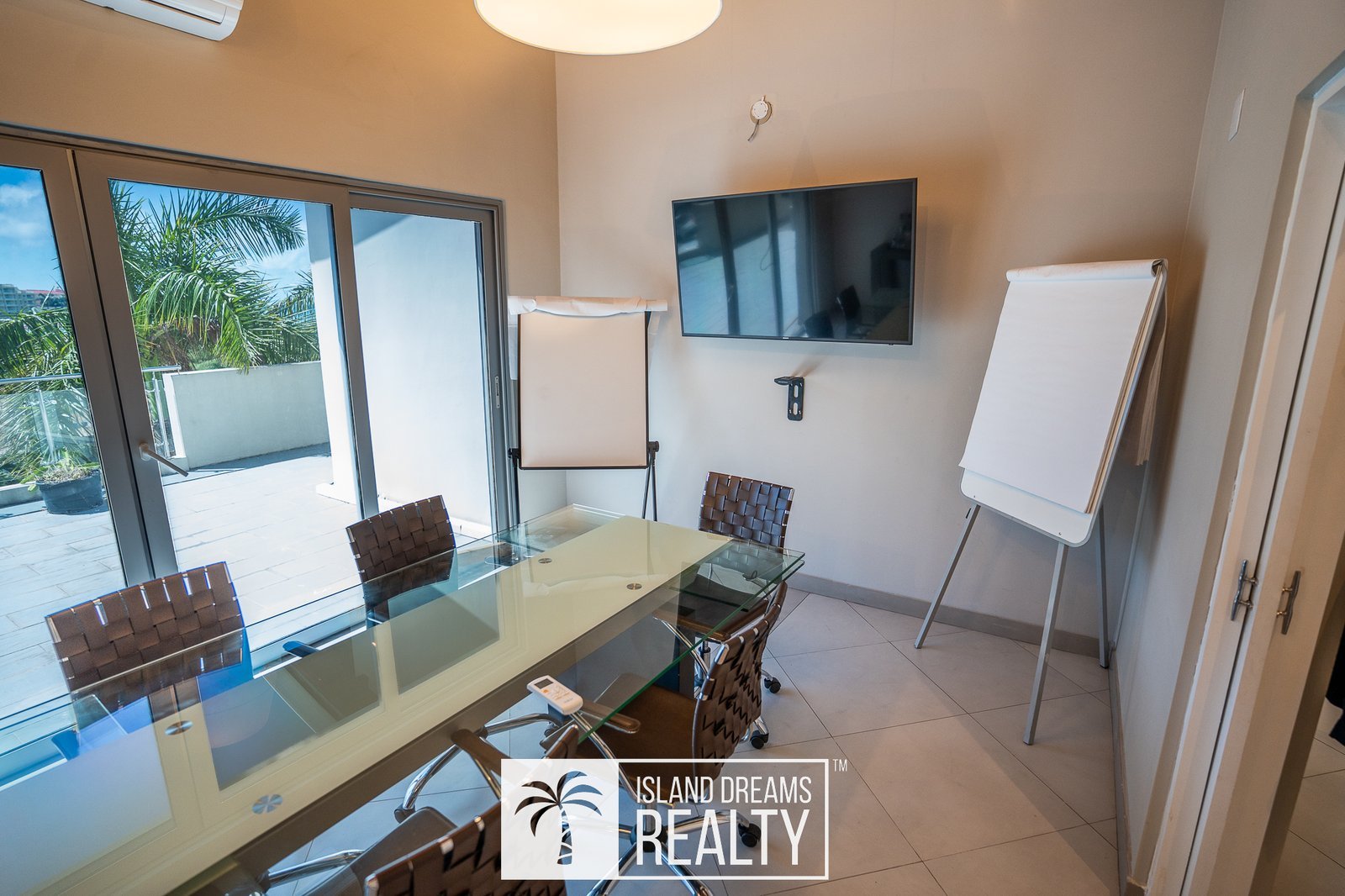 This expansive, luxury office space is perfect for businesses looking to establish a prestigious presence in St. Maarten. The large double unit features 6 spacious offices, 1 conference room, a convenient kitchen, and a bathroom. Take in the breathtaking ocean views from the double patio, ideal for client networking.