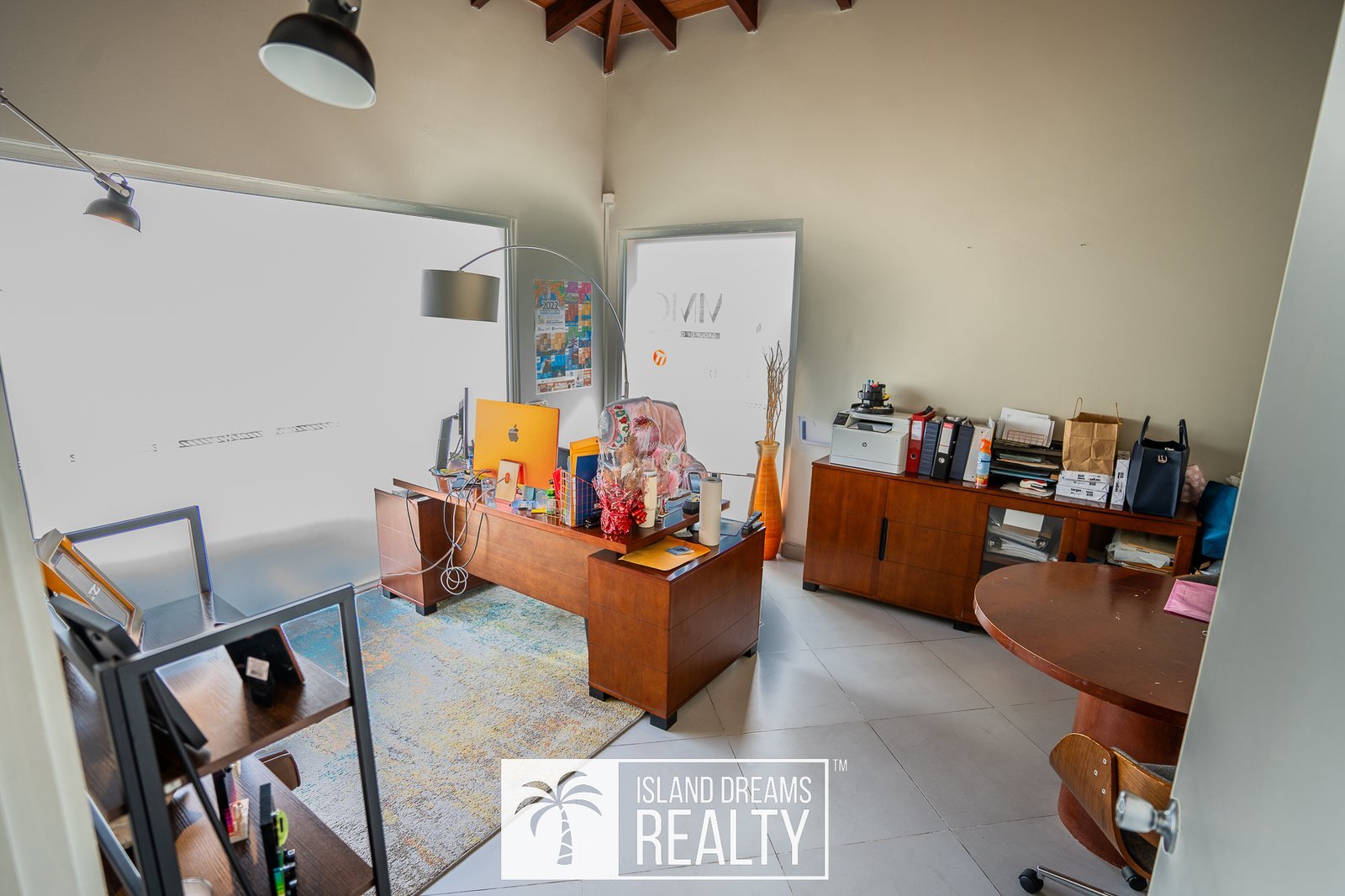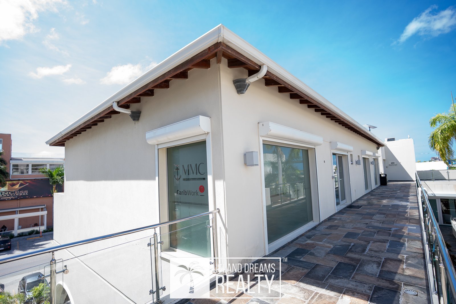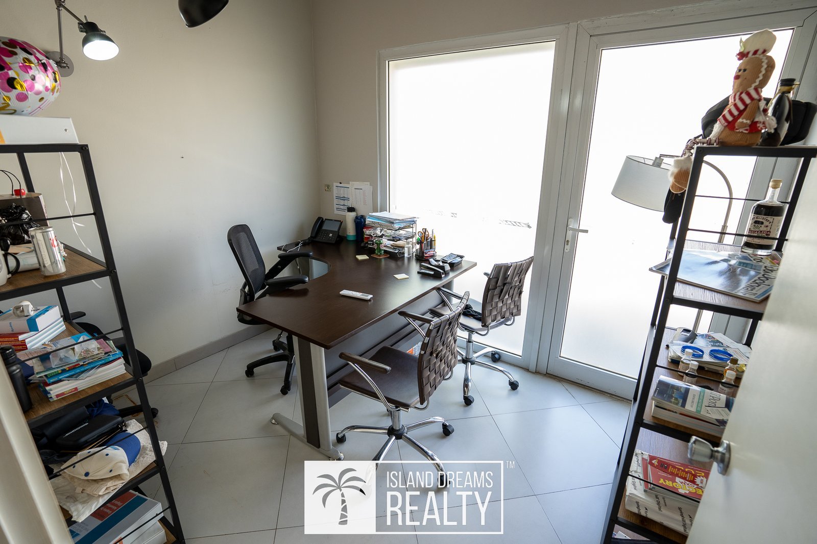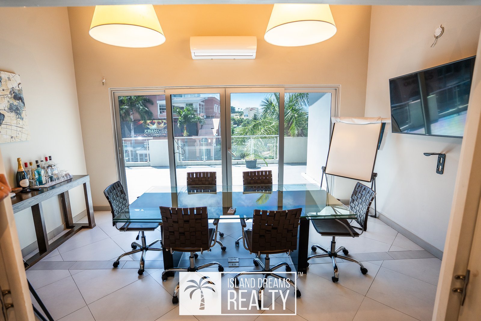 This expansive, luxury office space is perfect for businesses looking to establish a prestigious presence in St. Maarten. The large double unit features 6 spacious offices, 1 conference room, a convenient kitchen, and a bathroom. Take in the breathtaking ocean views from the double patio, ideal for client networking.