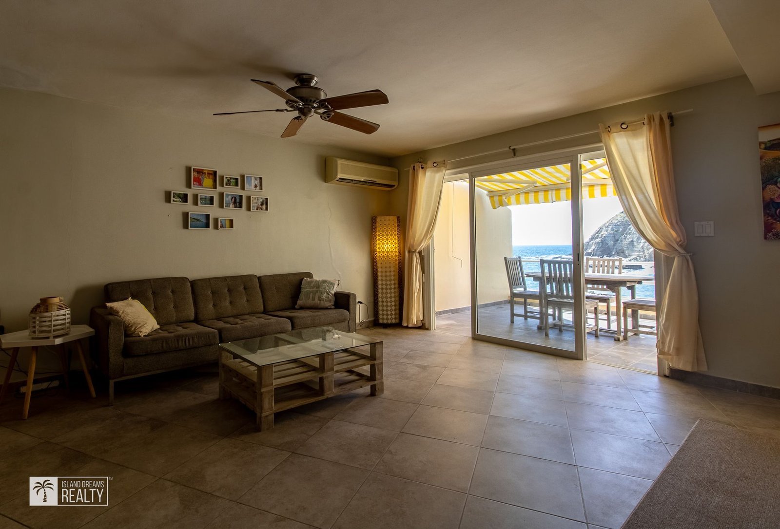 The spacious yet cozy living room flows to the balcony through glass sliding doors, allowing for plenty of natural light. The balcony is a perfect size to unwind with the sounds of the ocean or entertain a group of friends with a nice barbecue.