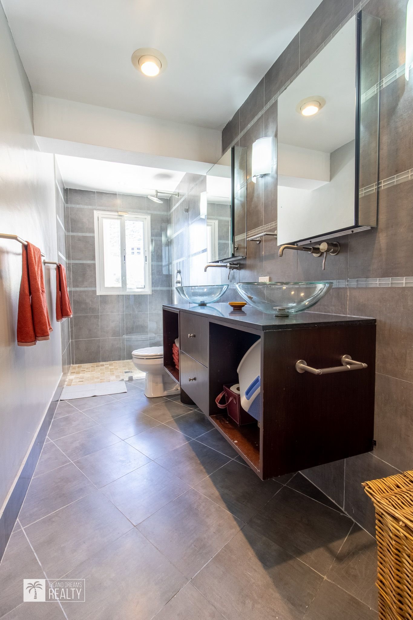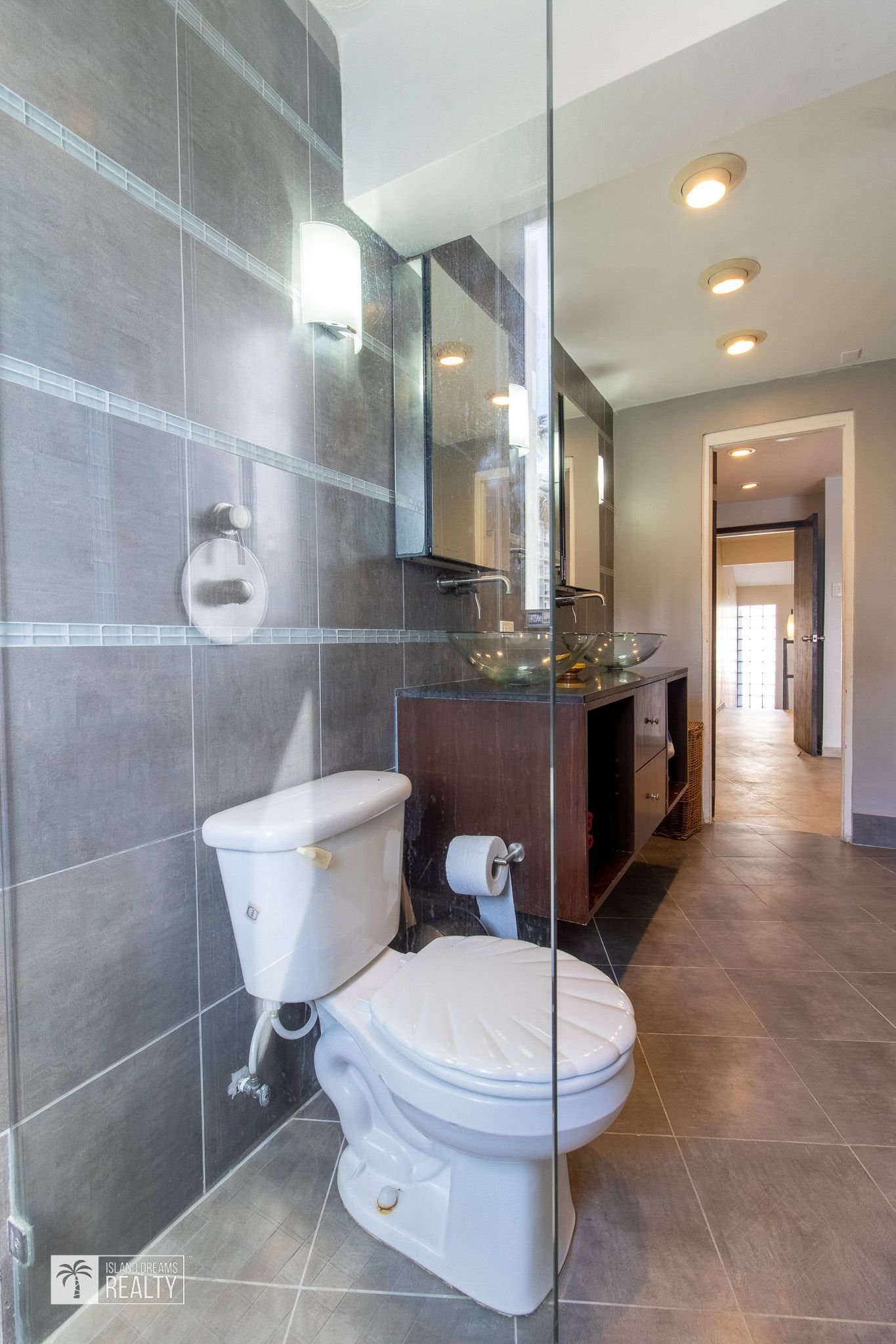 Further down the hall is the spacious master bedroom with amazing ocean views from both the bedroom and the shower. The master’s ensuite has double glass bowl sinks and enough storage space for two people. The best part about the master, however, is the large walk-in closet!