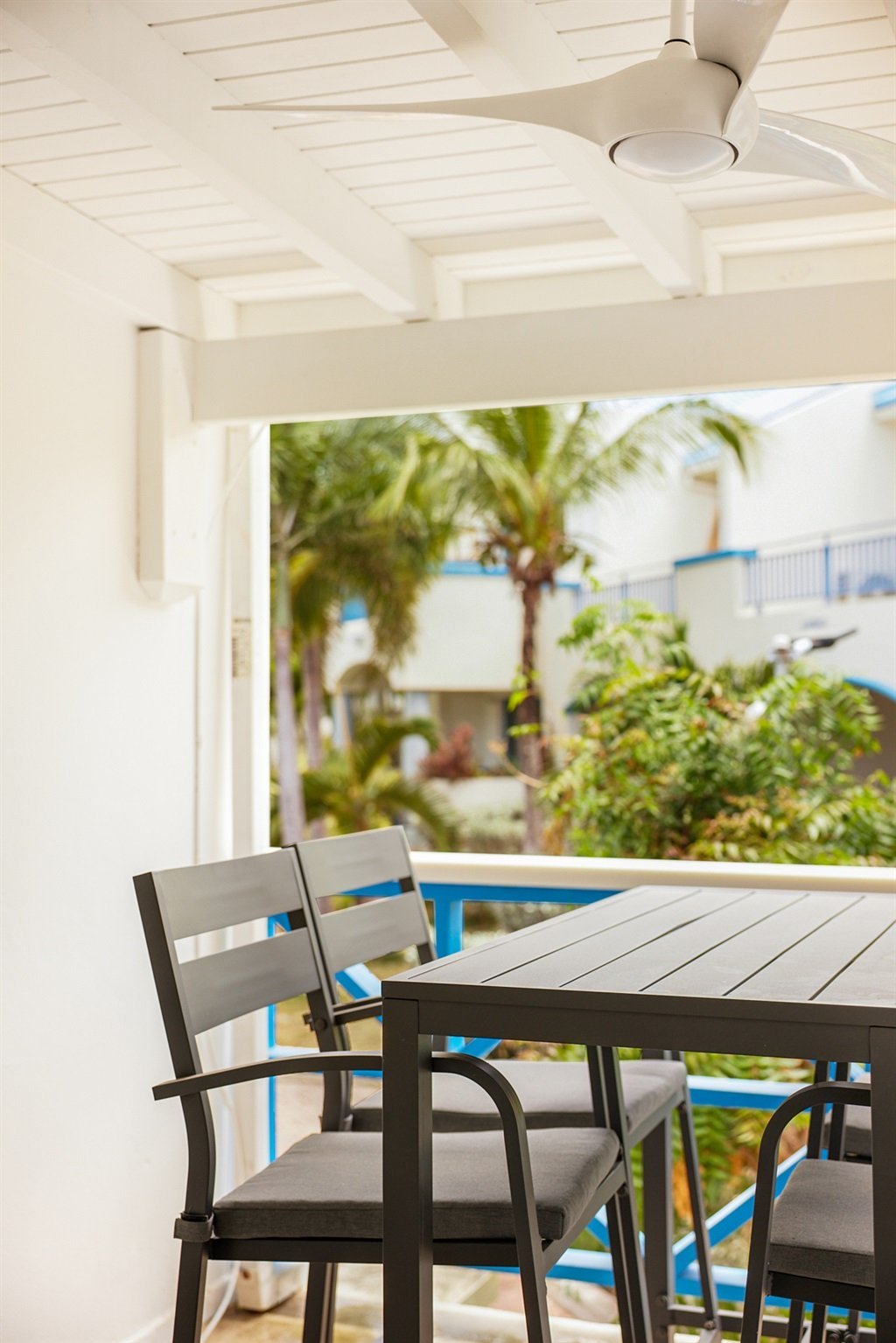 Bright, open living space with modern kitchen and updated bathroom, enjoying beautiful sea views and excellent airflow.