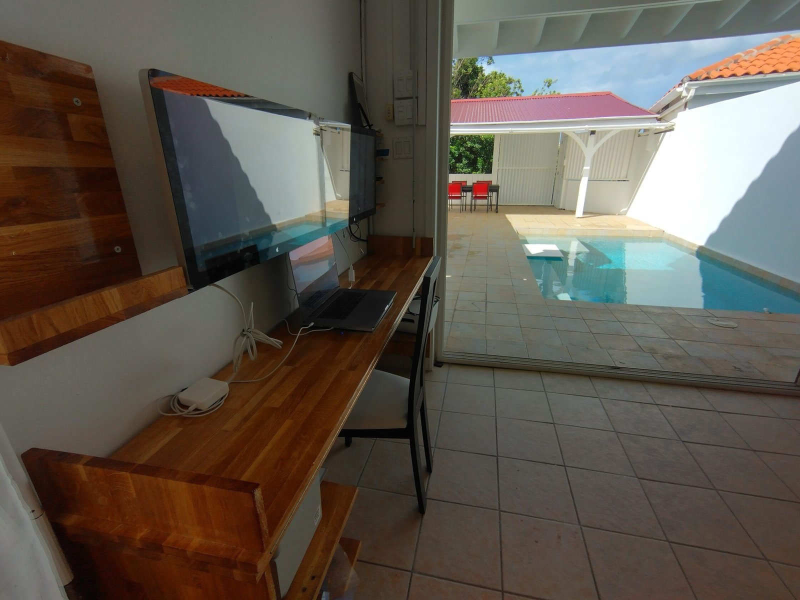 Outside, the property features a nice pool and terrace area, perfect for relaxing, sunbathing, or hosting dinners with friends and family. The terrace has an outside kitchen, BBQ area, extendable table for up to 8 people as well as 110 volt and 220 volt weatherproof outlets. Above the pool is a large screen, projector and hard drive with over 1000 films, making it the perfect spot to hang out and watch movies at night. Additionally, the ground floor of the property includes a workshop and storage space, providing great room for your hobbies or extra storage needs.