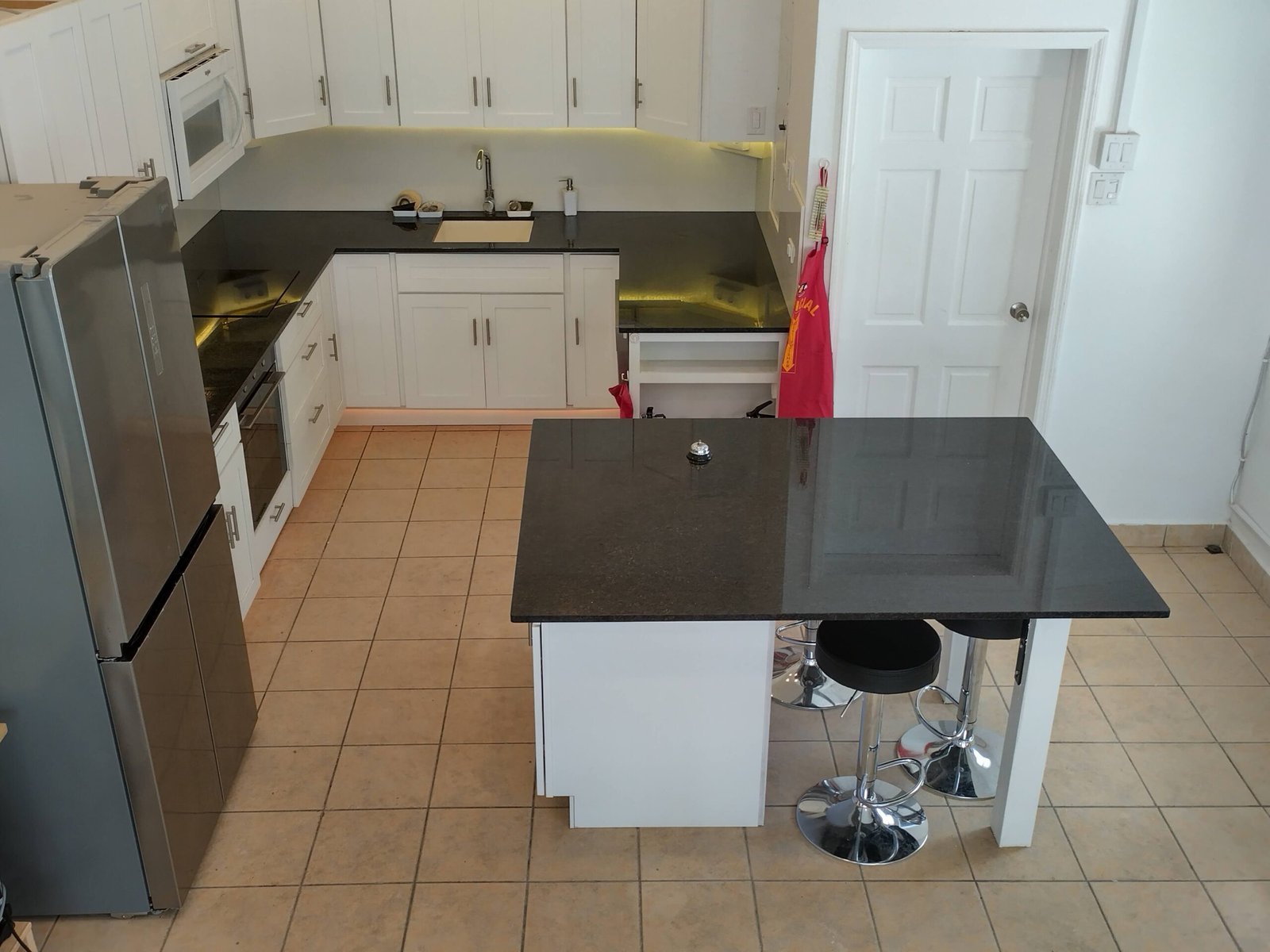 The new kitchen with kitchen island is fully equipped with modern appliances and furniture such as solid wood cabinets, black granite countertops, induction cooktop, convection oven, dishwasher, 4 door refrigerator with power station and microwave, providing the perfect environment for cooking and entertaining guests. The lighting system is exquisite, providing a warm and welcoming ambiance throughout the house.