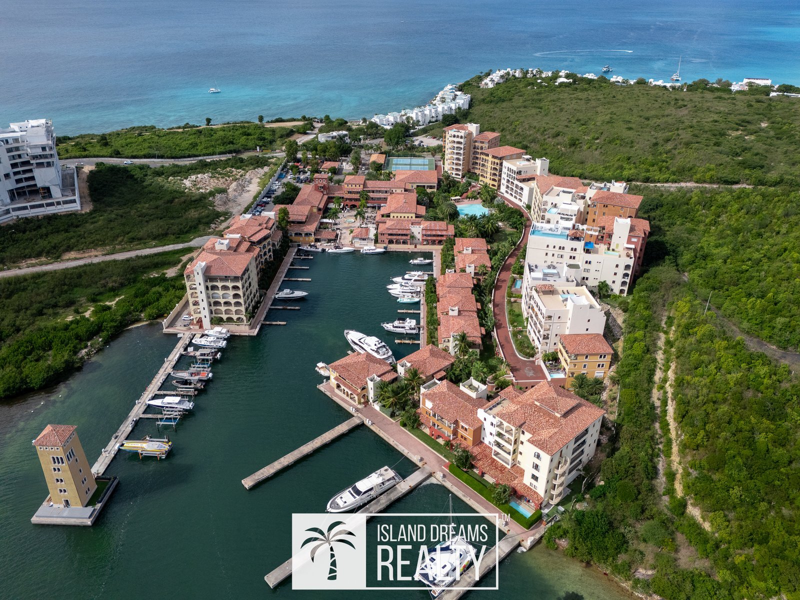 This gated luxury development offers a private marina, a large resort-style swimming pool, fitness center, on-site restaurants and boutiques, underground parking, and 24/7 security. The walkable village setting places residents just steps from Cupecoy Beach and moments from everything the island has to offer.