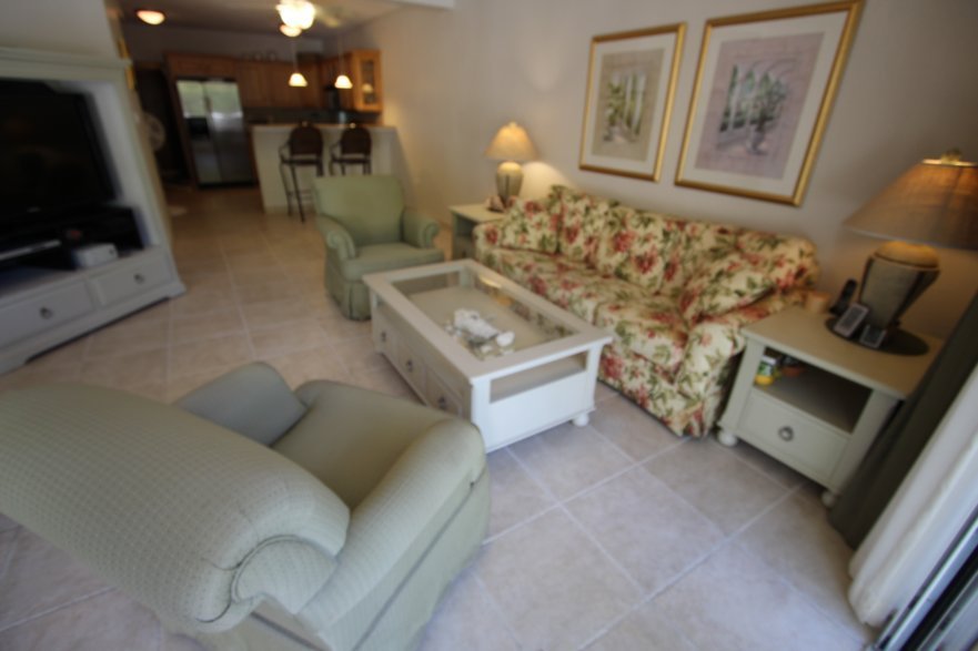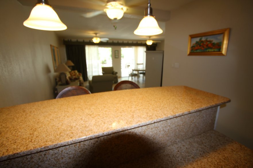 The condo has in suite washer and dryer, granite counter tops, stainless steel appliances, 2 air conditioning units (one in guest room for added comfort and control), and ceiling fans throughout.