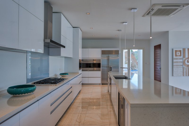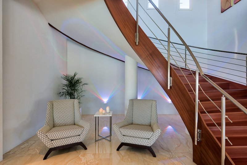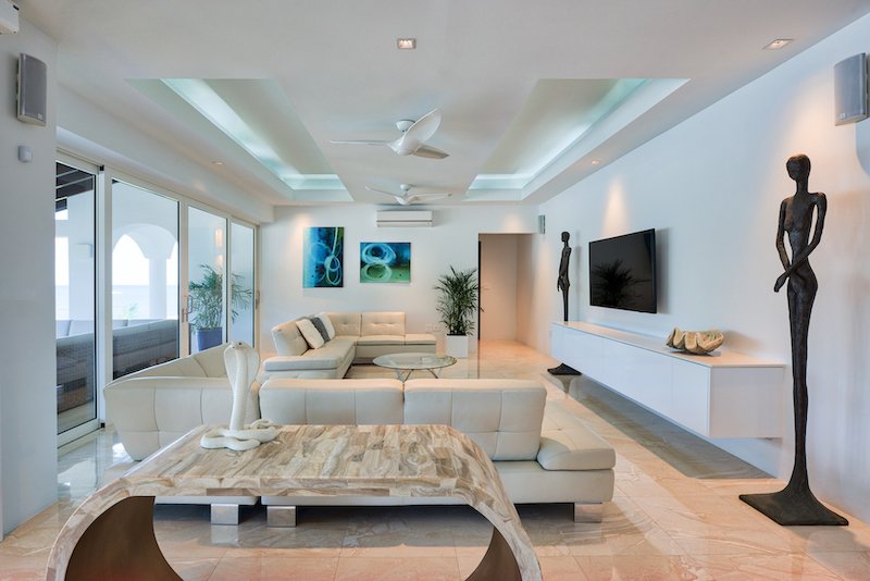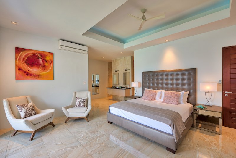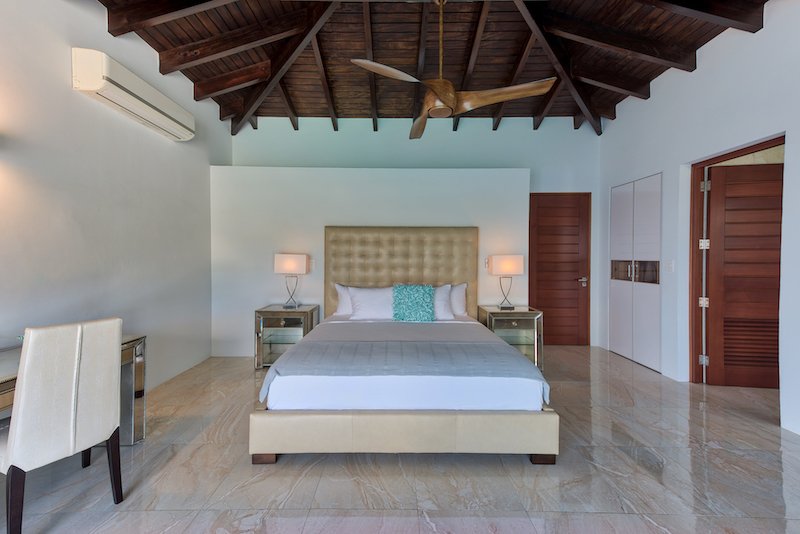 Clean modern lines throughout Villa while keeping the island’s warm touches throughout with wooden ceilings, teak curved staircase and exquisite detail.