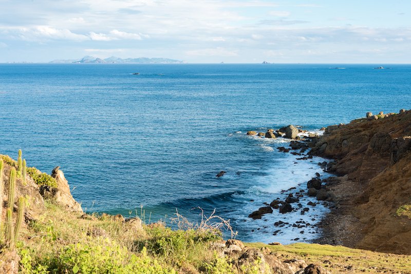 Surrounded by gorgeous rock outcroppings on the shores, this villa sits up high off the water to maximize the views of the landscape, sea and surf. A gentle staircase takes you right to the water’s edge and long sandy beach.