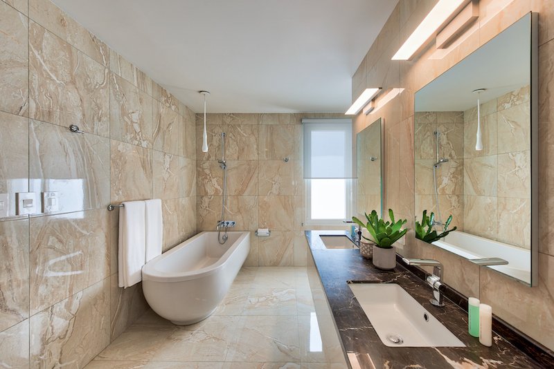 - Double showers heads in most showers including 3rd rain shower head in some bathrooms. Master bath has contemporary soaking bathtub.