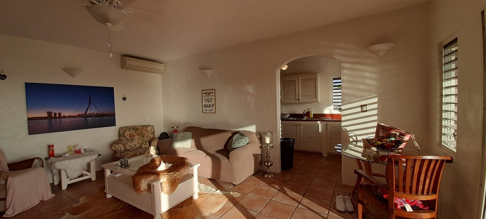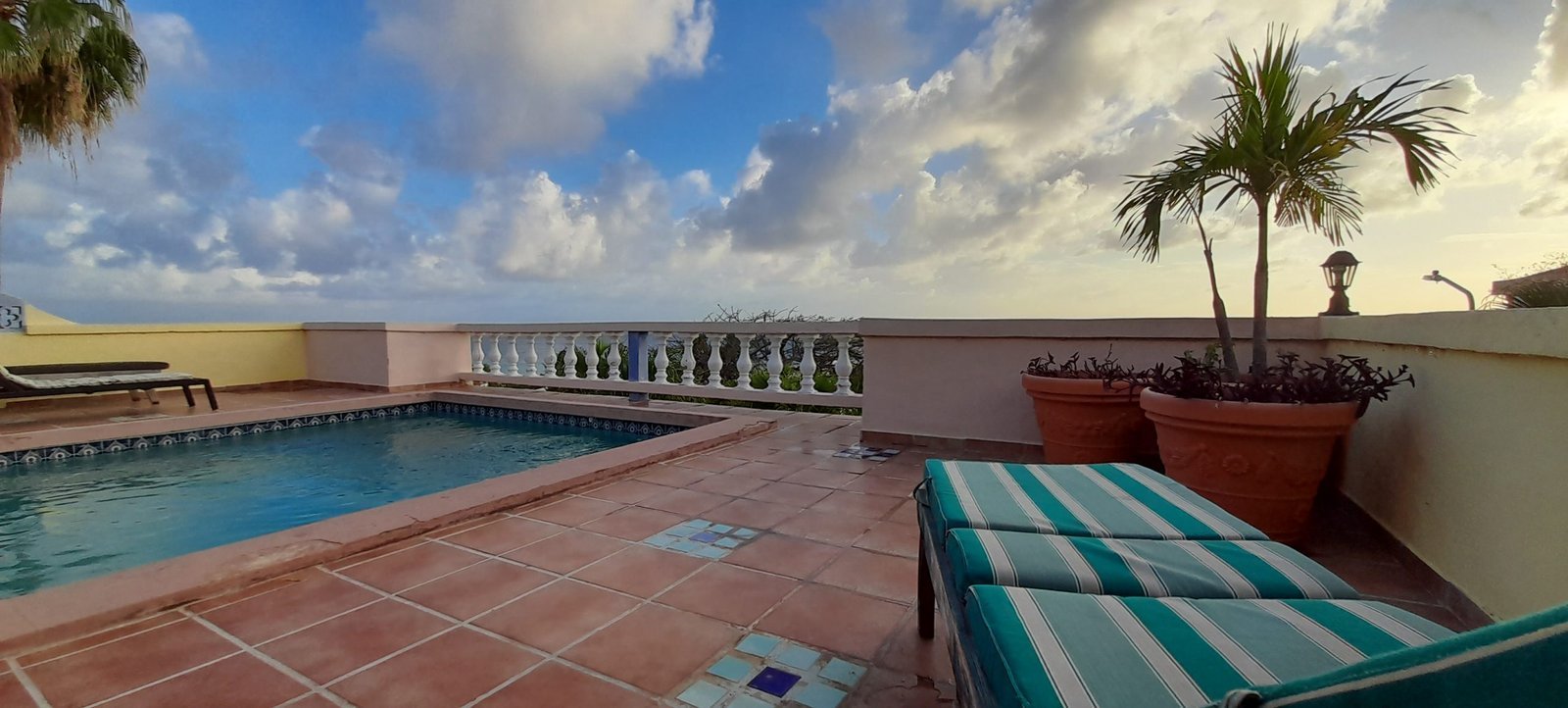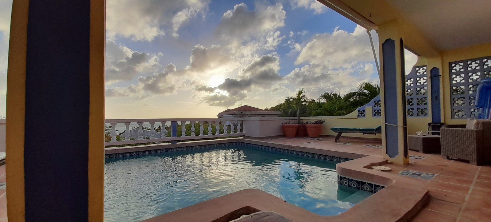 The real estate property consists of multiple levels featuring a large 3 bedroom villa with private pool upstairs and two 1 bedroom 1 bathroom condos with each their own little balcony in the garden downstairs. Because of the separation there is total privacy in the 1 Bedroom condos as well as the villa upstairs. Recently painted and upgraded, the upstairs villa still has some special characteristics but is ready to move in.