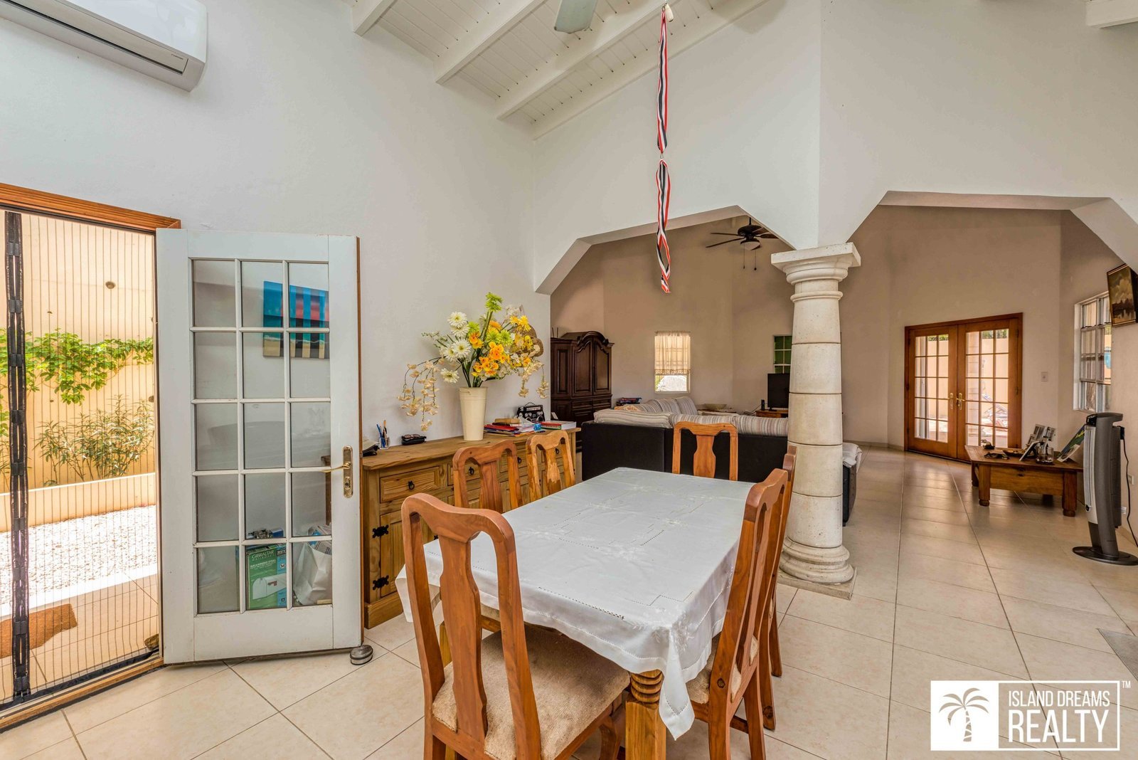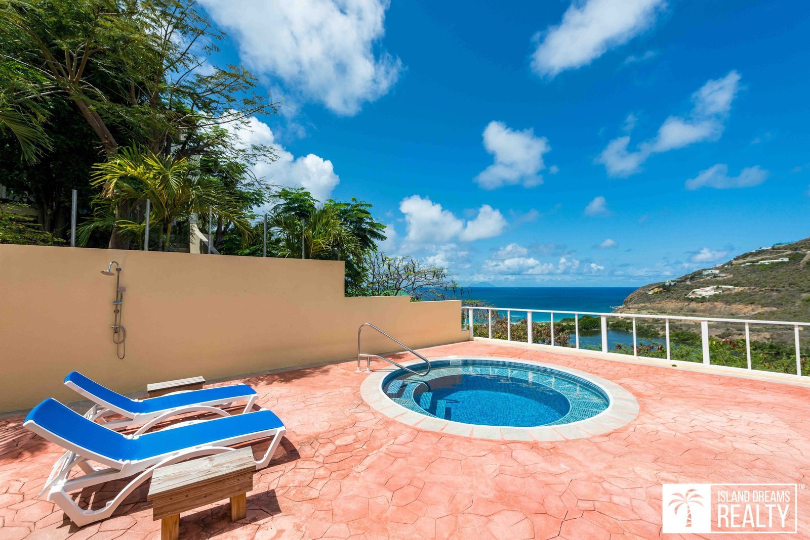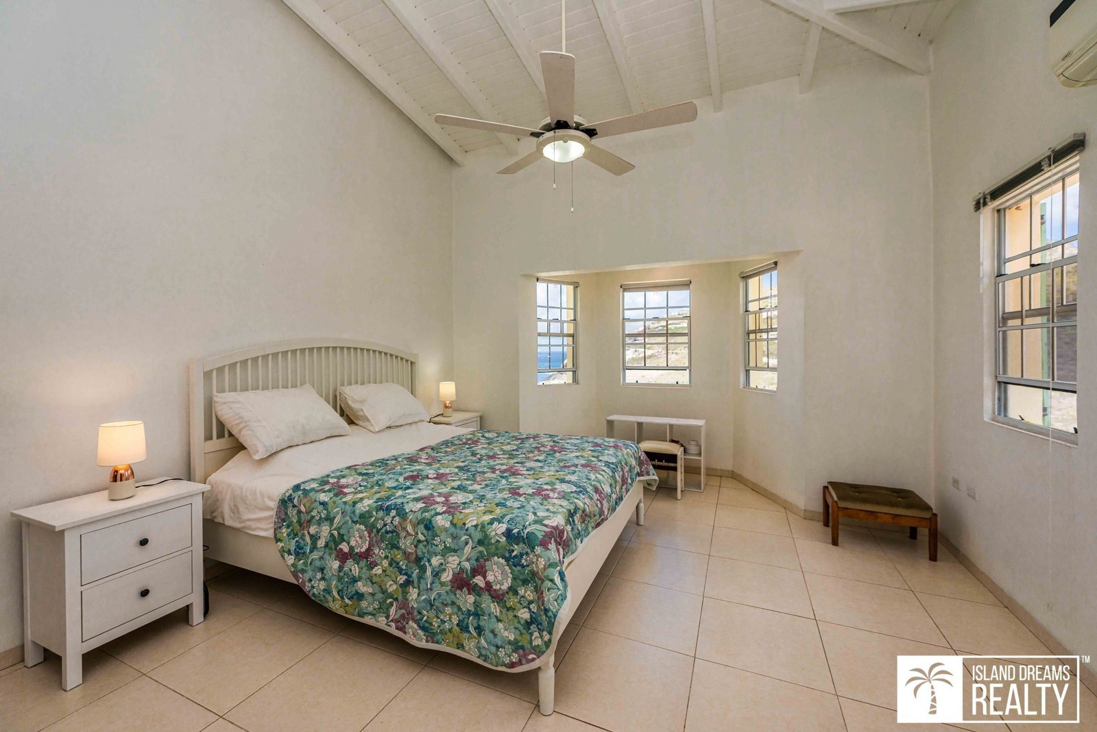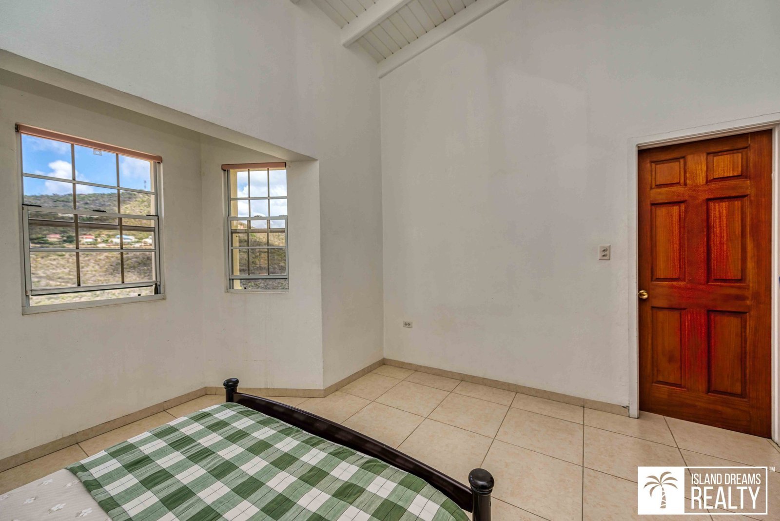 Find pure serenity as you look out at the cruise ships passing by on the mirroring waters of the Caribbean Sea, with our neighboring island Saba peaking in the background… Villa Jeannette is an immaculately built 3-bedroom villa with a one bedroom apartment below the main villa. Located in the highly favored residential area of Belair, the villa is in close proximity to anything you can think of. The beach is literally down the road, the hospital is around the corner and there are schools and supermarkets a mere 5 minute drive away. The main villa offers an extremely spacious living room with an open floor concept to the dining and kitchen area. Next to the kitchen is a convenient laundry room/pantry with an access door to the back porch. Through the hallway you’ll find a full bathroom, a bedroom that is currently being used as an office, a second spacious bedroom with en-suite bathroom and at the end of the hall the very spacious master bedroom with en-suite bathroom and a large walk-in closet. The living room opens up to the best part of this house, being the relaxing front porch and pool deck with spectacular views of the Caribbean Sea, the Belair Pond and the green lush hills surrounding. The pool is a new addition to this house and was completed in 2021. The cozy plunge pool has seating all around on the inside and is a great place to relax with a drink or entertain a group of friends. The deck wraps around to the back porch, offering plenty of space to hang laundry or do some gardening. Below the main villa you’ll find a one bedroom apartment with a separate parking space. The apartment is cozy, yet spacious, and has an open floor living and kitchen area. This is a perfect rental income opportunity! Also on the ground floor you have an extra storage room and an open door garage. The property is gated and has enough parking for up to 4 cars. The villa is built extremely well with an entirely concrete structure and roof with hurricane shutters throughout the property. The roof gutters are also made of concrete and recessed to provide extra strength and hold to the roof. The villa had absolutely no damage during Hurricane Irma and will definitely withstand any hurricane that comes its way. The villa is being sold semi furnished, meaning that only the kitchen appliances are included in the sale. Take a look at our rough walk-through video below. Don’t miss your chance to own this stand-alone piece of paradise. Contact Yasmine now at +1 (721) 520-2600 or yasmine@idr.sx for an in-person or virtual showing.
