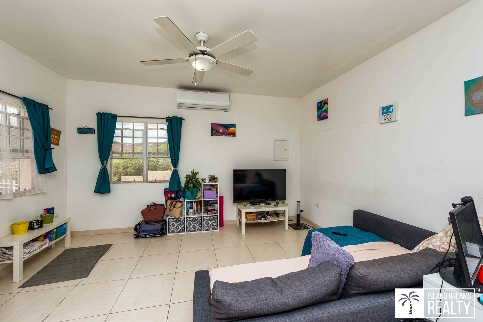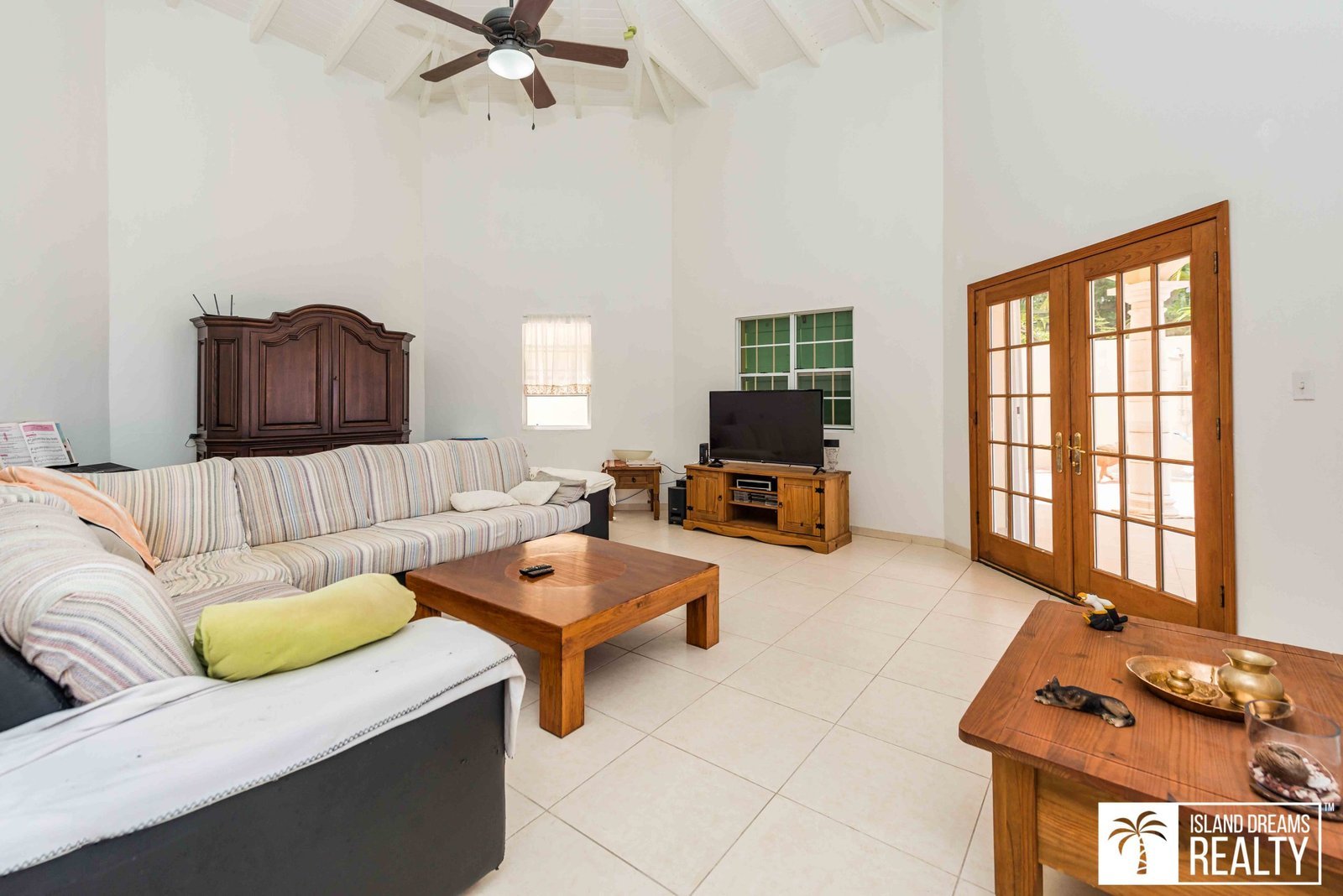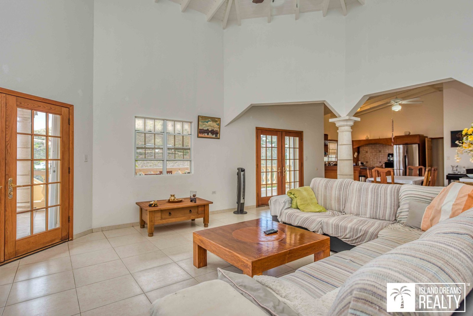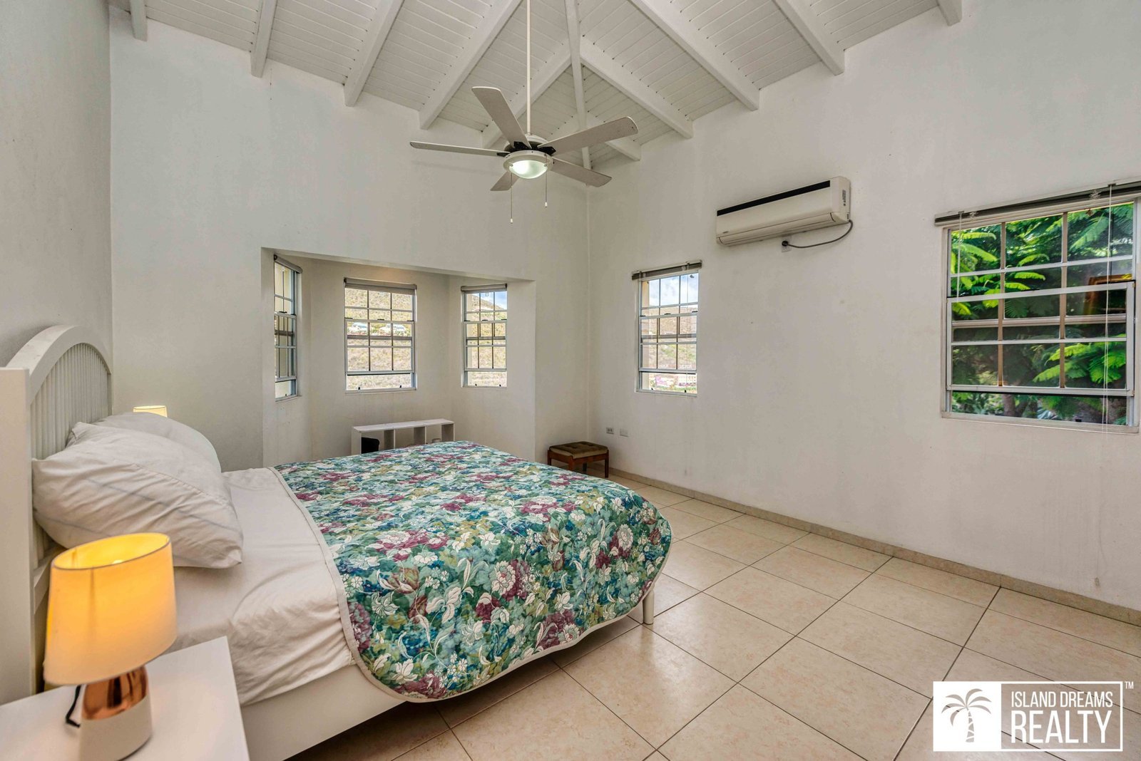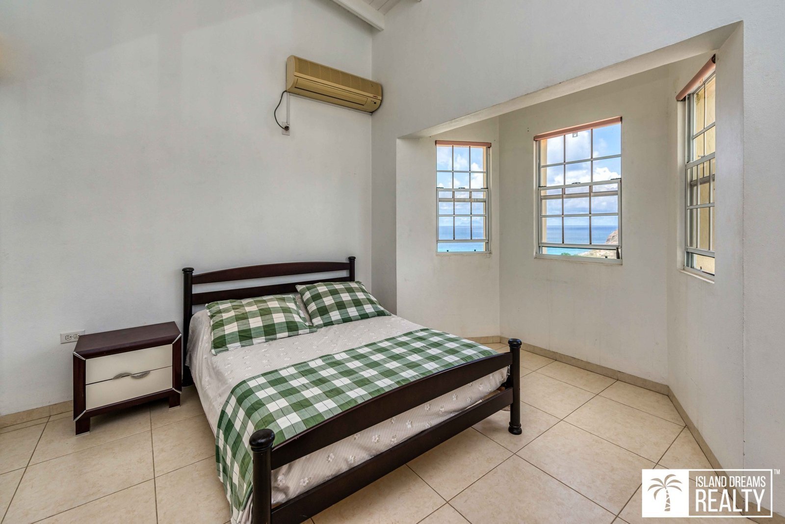 Find pure serenity as you look out at the cruise ships passing by on the mirroring waters of the Caribbean Sea, with our neighboring island Saba peaking in the background… Villa Jeannette is an immaculately built 3-bedroom villa with a one bedroom apartment below the main villa. Located in the highly favored residential area of Belair, the villa is in close proximity to anything you can think of. The beach is literally down the road, the hospital is around the corner and there are schools and supermarkets a mere 5 minute drive away. The main villa offers an extremely spacious living room with an open floor concept to the dining and kitchen area. Next to the kitchen is a convenient laundry room/pantry with an access door to the back porch. Through the hallway you’ll find a full bathroom, a bedroom that is currently being used as an office, a second spacious bedroom with en-suite bathroom and at the end of the hall the very spacious master bedroom with en-suite bathroom and a large walk-in closet. The living room opens up to the best part of this house, being the relaxing front porch and pool deck with spectacular views of the Caribbean Sea, the Belair Pond and the green lush hills surrounding. The pool is a new addition to this house and was completed in 2021. The cozy plunge pool has seating all around on the inside and is a great place to relax with a drink or entertain a group of friends. The deck wraps around to the back porch, offering plenty of space to hang laundry or do some gardening. Below the main villa you’ll find a one bedroom apartment with a separate parking space. The apartment is cozy, yet spacious, and has an open floor living and kitchen area. This is a perfect rental income opportunity! Also on the ground floor you have an extra storage room and an open door garage. The property is gated and has enough parking for up to 4 cars. The villa is built extremely well with an entirely concrete structure and roof with hurricane shutters throughout the property. The roof gutters are also made of concrete and recessed to provide extra strength and hold to the roof. The villa had absolutely no damage during Hurricane Irma and will definitely withstand any hurricane that comes its way. The villa is being sold semi furnished, meaning that only the kitchen appliances are included in the sale. Take a look at our rough walk-through video below. Don’t miss your chance to own this stand-alone piece of paradise. Contact Yasmine now at +1 (721) 520-2600 or yasmine@idr.sx for an in-person or virtual showing.