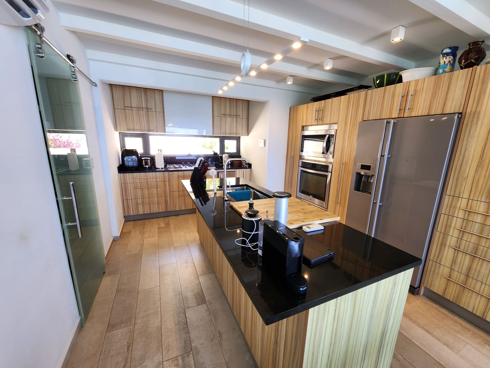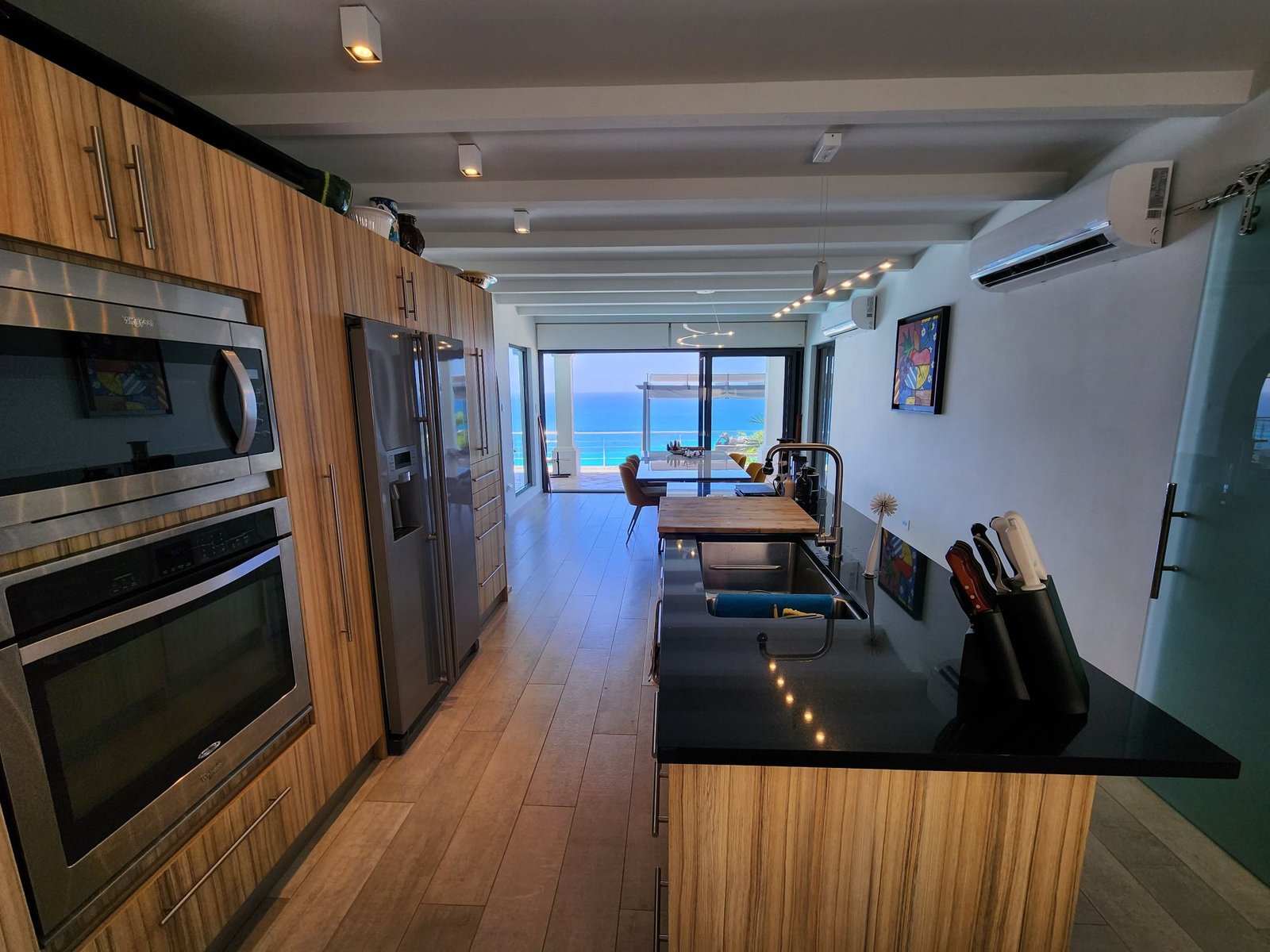 As you walk through the front door of this magnificent villa you are met with breathtaking views of the Caribbean Sea. On the main level you’ll find the master bedroom, with a large walk-in closet and a huge on-suite bathroom, equipped with a shower and a luxurious bath tub. Wake up and walk straight into the pool through the sliding doors leading to the outdoor terrace.