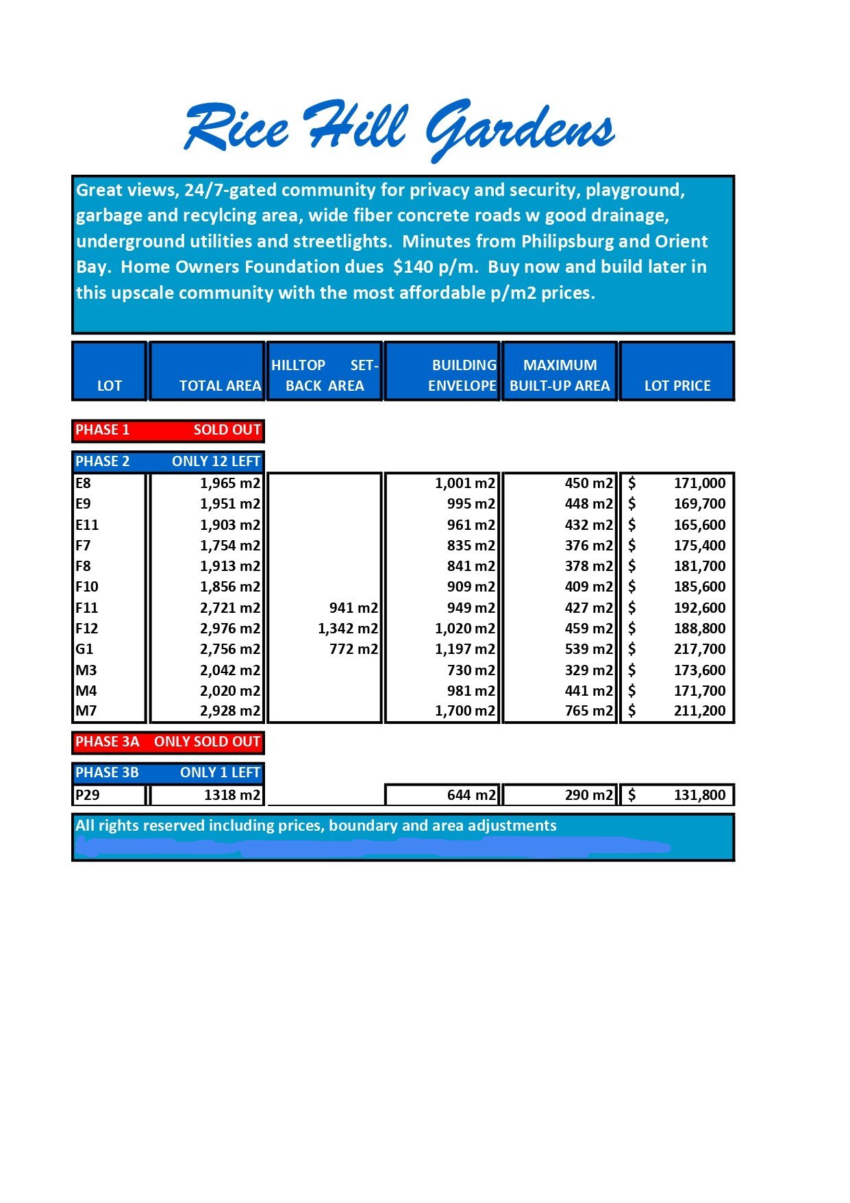 Lush, prime parcels of land for sale in the upscale, 24/7 secured, private community of Rice Hill Gardens, Sint Maarten,…